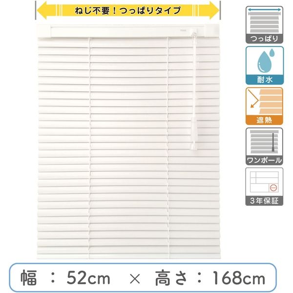 | 商品の特徴 | ブラインドは長く使うからこそしっかりとこだわったプロ仕様品質をそのままに、機能をシンプルにすることで格安価格を実現しました。遮熱加工済みで羽根幅は標準の25mm。取付けはネジのいらない【つっぱりタイプ】なのでタイル面でもご利用可能です。また耐水機能付きなので、サビやカビが気になる湿気の多い場所にもおすすめです。 | ||