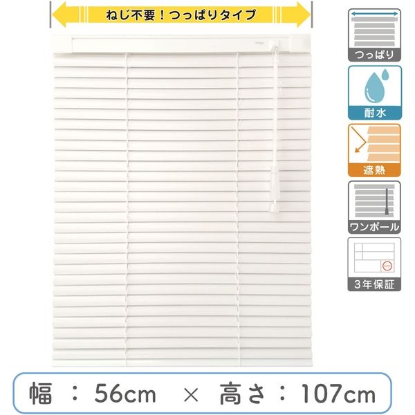 | 商品の特徴 | ブラインドは長く使うからこそしっかりとこだわったプロ仕様品質をそのままに、機能をシンプルにすることで格安価格を実現しました。遮熱加工済みで羽根幅は標準の25mm。取付けはネジのいらない【つっぱりタイプ】なのでタイル面でもご利用可能です。また耐水機能付きなので、サビやカビが気になる湿気の多い場所にもおすすめです。 | ||