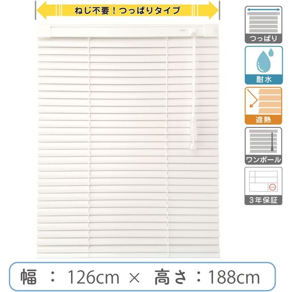 | 商品の特徴 | ブラインドは長く使うからこそしっかりとこだわったプロ仕様品質をそのままに、機能をシンプルにすることで格安価格を実現しました。遮熱加工済みで羽根幅は標準の25mm。取付けはネジのいらない【つっぱりタイプ】なのでタイル面でもご利用可能です。また耐水機能付きなので、サビやカビが気になる湿気の多い場所にもおすすめです。 | ||