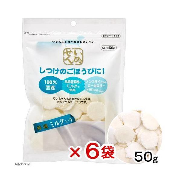 | 商品の特徴 | ●新鮮なミルクを贅沢に使用した、おせんべいタイプのおやつです。●カルシウムを豊富に含有しています。●100%国産で安心安全です。●馬鈴薯澱粉を使用しています。●ノンフライなのでカロリー控えめです。●しつけのごほうびにも最適です。●そのままでも、割っても与えることができます。●チャック付きなので、保存に便利です。 | ||