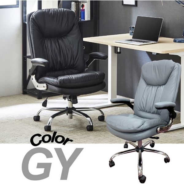 後藤家具物産 オラフ OAチェアー 跳ね上げ式肘 ソフトレザー 座面ポケットコイル グレー OA-ORF-GY 1脚(直送品)