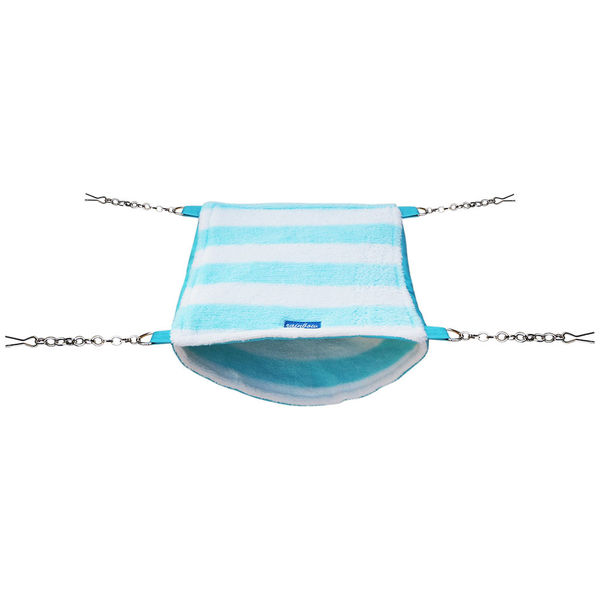 商品の特徴 ●キュートなボーダー柄の小動物、鳥用のハンモックです。●ハンモックとしてだけでなく、ハウスとしてもご使用いただけます。●生地はふんわりボア生地を使用しているためとても暖かいです。●寝心地がよく、使いやすく楽しい形です。