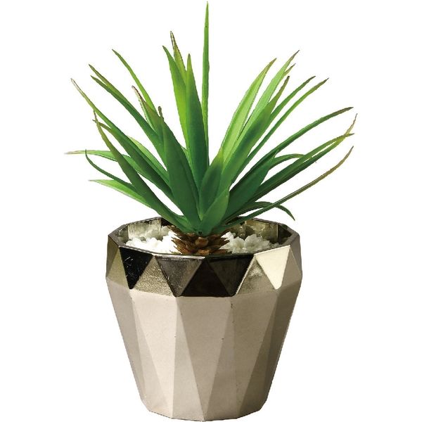 | 商品の特徴 | キラキラと光沢感があるポットに入ったフェイクグリーンです。■フェイクグリーンのモデルは、アメリカ大陸などに広く分布し、日本でも庭木などとして成育しているユッカ。本物のユッカは1~10メートルもの大きさに成長するとも言われていますが、いつまでも同じ大きさのままでいる点はフェイクグリーンのメリットの1つ。シャンパンゴールドのポットが、お部屋にゴージャスな雰囲気もプラスしてくれます。 | ||