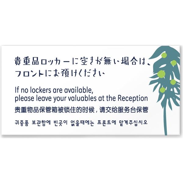 フジタ 4ヶ国語対応サインプレート(案内板) TREEデザイン C-IM2-0120 貴重品はフロントへ 平付型(直送品)