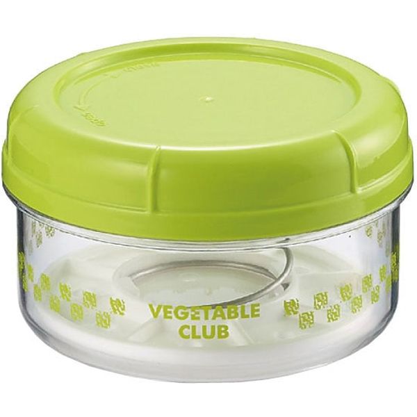 - ●材質:本体容器: AS樹脂/押板: ポリプロピレン(PP)/フタ: ABS樹脂/バネ: 18-8 ステンレス ●サイズ:約φ100 × 62 (高) mm ●満水容量:約300ml ●製品重量:約103g ●カラー:グリーン ●生産国:日本