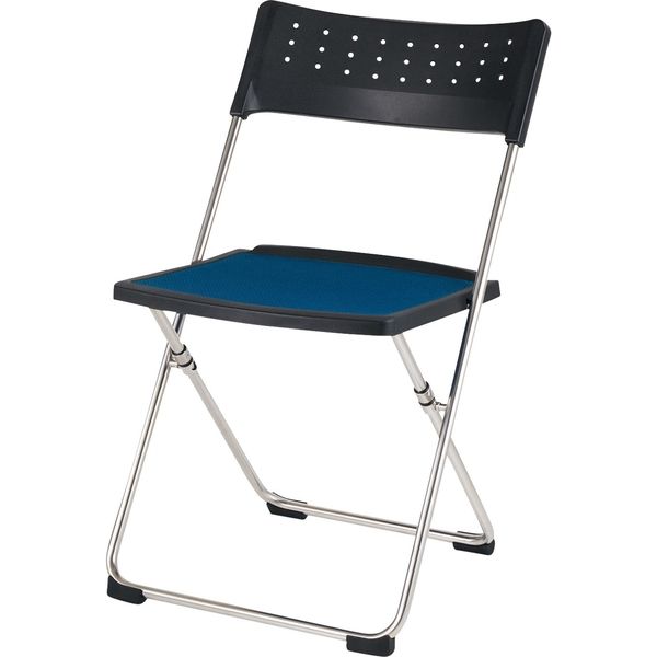 藤沢工業 折りたたみイス パッドタイプ ブルー 1脚 折りたたみ式 幅425mm パイプ椅子 折り畳みチェア キャスター無し