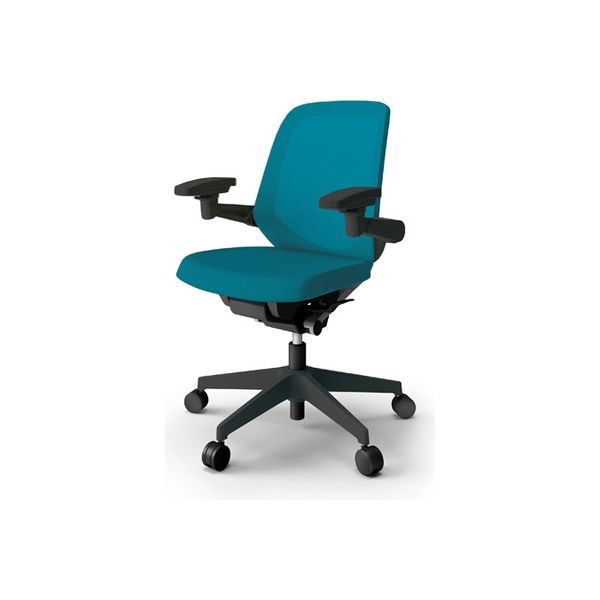材質 背 :メッシュ張り(ポリエステル73%・再生ポリエステル27%) ポリジン加工 座 :布地張り(ポリエステル100%)ポリジン加工 背ブラッケット:強化ナイロン樹脂 肘当て:発泡ウレタン一体成型  肘受け:強化ナイロン樹脂 脚:強化ナイロン樹脂 ・ナイロン双輪キャスター付き その他商品仕様 ●機能:アンクルムーブ・シンクロロッキングは、くるぶしを支点に背と座の角度が連動して傾き、背の最後傾角度は20°まで可能です。またロッキングの角度をお好みの場所で固定できるシートアングルストッパー付です。座の奥行調節機構は、座面下のレバー操作により、座面を50mmのストローク(16.7mmピッチ)で好みの位置に調節できます。体格や作業姿勢に合わせたポジション設定が行えます。ベンディングシート、座部のインナーシェル(芯材:ポリプロピレン樹脂製)には、最適な箇所が着座荷重に応じて自在にたわむように多数のスリットを設けています。フレキシブルに姿勢変化に対応し、からだになじむ座り心地を実現しました。コンパクト設計 本体がコンパクトな設計となっており、アジャスタブル肘、ループ肘付タイプともにW1000片袖デスク(L型脚)に格納できるサイズになっています。●調節機能:・ガス上下調節:レバー操作により座面の高さ調節が行えます。・シートアングルストッパー:ロッキングの角度をおこのみのばしょで固定できます。・ロッキング強弱調節:体格や好みに合わせて無段階で調節できます。●肘の機能:作業姿勢に合わせて腕を支える3Dアーム  (集中姿勢)肘当てを身体に近い位置へ動かすことができるため、デスクトップPC、ノートPC操作の時に肘をしっかりと支えて自然な姿勢で作業をすることができます。 (リラックス姿勢)肘当てを後方に動かすことができるため、タブレット、スマートフォン操作の時に、背にもたれ、リラックスした状態で作業をすることができます。 ●ベースカラー:ブラック(T1)