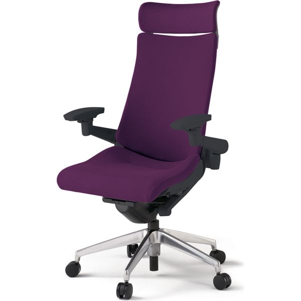 【組立設置込】イトーキ アクトチェア EXハイバック 布張 ランバー付 可動肘 アルミ脚 ウレタンキャスター ハンガー無 黒×プラムパープル 1脚(直送品)