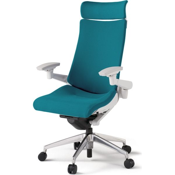 | 材質 | 背・座 :布地張り(再生ポリエステル63%・ポリエステル37%) 背ブラッケット:強化ナイロン樹脂 肘当て:発泡ウレタン一体成型肘受け:強化ナイロン樹脂脚:アルミダイキャストミラー仕上・抵抗付きウレタン双輪キャスター付き | その他商品仕様 | ●アンクルムーブ・シンクロロッキング:くるぶしを支点に背と座の角度が連動して傾き、背の最後傾角度は20°まで可能です。 またロッキングの角度を5カ所で固定できるシートアングルストッパー付です。●サイドフレームレスデザイン:アンカー形状の支柱で身体を支える構造により、両サイドのアウターフレームを不要にしたスマートなシルエット。肩から背中にかけて、背のサイド部分が柔軟なため、身体を動かしたときのストレスが軽減されます。●フレキブルバックレスト:しなやかに追従する、ピボット構造バックレストは、肩の動きに合わせて回転し、上半身をスムーズに動かすことができます。●ベンディングシート:座部のインナーシェル(芯材:ポリプロピレン樹脂製)には、最適な個所が着座荷重に応じて自在にたわむように多数のスリットを設けています。●座の奥行調節機構:座面下のレバー操作により、体格に合わせたポジショニング設定が座った状態でできます。座の前縁部が折れ曲がる方式の採用で、ベンディングシートの相性もさらによくなりました。(調節75mm)●調節レバー:調節レバーはすべて座面右下に配置。 (1)シートアングルストッパー: ロッキングの角度をお好みの場所で固定できます。(2)ガス上下調節:レバー操作により座面の高さ調節が行えます。(3)ロッキング強弱簡易調節:体格や好みに合わせて、ロッキングの強弱を5段階で簡単に調節できます。 ●ランバーサポート:背と腰を支えるランバーサポートは、S字カーブを描く理想的な姿勢をサポートし、腰の負担を軽減します。ランバーサポートの位置は、ワーカーの身体に合わせて60mm・7段階の調節が可能。背にもたれて荷重がかかることで固定されます。●執務姿勢に合わせて腕を支える4Dリンクアーム:肘当ては、上下・前後・回転角度ともに、調節範囲内をワンアクションで自在に動かすことができます。(調節範囲:高さ=120mm、前後=50mm、アーム回転=内側20°・外側10°、肘パッド回転=内側15°・外側15°)。常に作業に最適な肘位置を保持することで疲労を緩和。肘当て部は、ソフトな使い心地の発泡ウレタン樹脂を採用しています。●ベースカラー:ベースカラー ホワイト(W9)脚:アルミミラー |