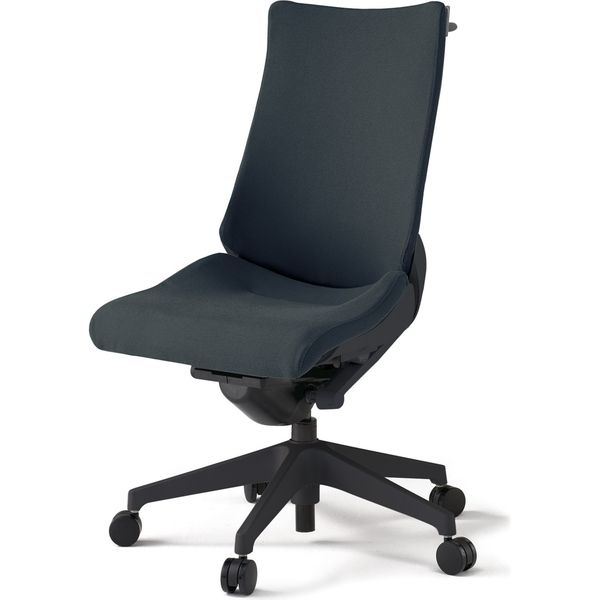 材質 背・座 :布地張り(再生ポリエステル63%・ポリエステル37%) 背ブラッケット:強化ナイロン樹脂 脚:強化ナイロン樹脂 ・抵抗付きウレタン双輪キャスター付き その他商品仕様 ●アンクルムーブ・シンクロロッキング:くるぶしを支点に背と座の角度が連動して傾き、背の最後傾角度は20°まで可能です。 またロッキングの角度を5カ所で固定できるシートアングルストッパー付です。●サイドフレームレスデザイン:アンカー形状の支柱で身体を支える構造により、両サイドのアウターフレームを不要にしたスマートなシルエット。肩から背中にかけて、背のサイド部分が柔軟なため、身体を動かしたときのストレスが軽減されます。●フレキブルバックレスト:しなやかに追従する、ピボット構造バックレストは、肩の動きに合わせて回転し、上半身をスムーズに動かすことができます。●ベンディングシート:座部のインナーシェル(芯材:ポリプロピレン樹脂製)には、最適な個所が着座荷重に応じて自在にたわむように多数のスリットを設けています。●座の奥行調節機構:座面下のレバー操作により、体格に合わせたポジショニング設定が座った状態でできます。座の前縁部が折れ曲がる方式の採用で、ベンディングシートの相性もさらによくなりました。(調節75mm)●調節レバー:調節レバーはすべて座面右下に配置。 (1)シートアングルストッパー: ロッキングの角度をお好みの場所で固定できます。(2)ガス上下調節:レバー操作により座面の高さ調節が行えます。(3)ロッキング強弱簡易調節:体格や好みに合わせて、ロッキングの強弱を5段階で簡単に調節できます。 ●ランバーサポート:ランバーサポート無●肘:肘無し●ベースカラー:ベースカラー ブラック(T1)