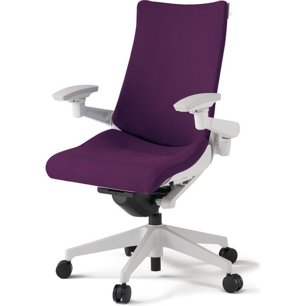 【組立設置込】イトーキ アクトチェア ハイバック 布張 ランバー無 可動肘 樹脂脚 ナイロンキャスター ハンガー付 白×プラムパープル 1脚(直送品)