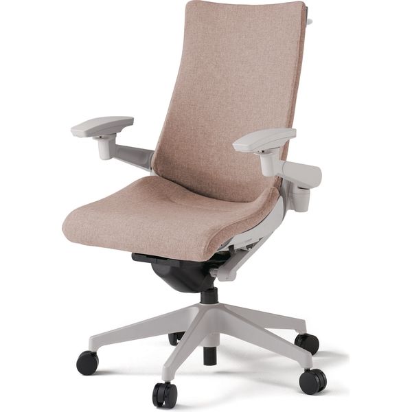材質 背・座 :布地張り(ポリエステル100%) 背ブラッケット:強化ナイロン樹脂 肘当て:発泡ウレタン一体成型肘受け:強化ナイロン樹脂脚:強化ナイロン樹脂 ・ナイロン双輪キャスター付き その他商品仕様 ●アンクルムーブ・シンクロロッキング:くるぶしを支点に背と座の角度が連動して傾き、背の最後傾角度は20°まで可能です。 またロッキングの角度を5カ所で固定できるシートアングルストッパー付です。●サイドフレームレスデザイン:アンカー形状の支柱で身体を支える構造により、両サイドのアウターフレームを不要にしたスマートなシルエット。肩から背中にかけて、背のサイド部分が柔軟なため、身体を動かしたときのストレスが軽減されます。●フレキブルバックレスト:しなやかに追従する、ピボット構造バックレストは、肩の動きに合わせて回転し、上半身をスムーズに動かすことができます。●ベンディングシート:座部のインナーシェル(芯材:ポリプロピレン樹脂製)には、最適な個所が着座荷重に応じて自在にたわむように多数のスリットを設けています。●座の奥行調節機構:座面下のレバー操作により、体格に合わせたポジショニング設定が座った状態でできます。座の前縁部が折れ曲がる方式の採用で、ベンディングシートの相性もさらによくなりました。(調節75mm)●調節レバー:調節レバーはすべて座面右下に配置。 (1)シートアングルストッパー: ロッキングの角度をお好みの場所で固定できます。(2)ガス上下調節:レバー操作により座面の高さ調節が行えます。(3)ロッキング強弱簡易調節:体格や好みに合わせて、ロッキングの強弱を5段階で簡単に調節できます。 ●ランバーサポート:ランバーサポート無●肘:執務姿勢に合わせて腕を支える4Dリンクアーム:執務(集中姿勢)肘当てを身体に近い位置へ動かすことができるため、デスクトップPC、ノートPC操作の時に肘をしっかりと支えて自然な姿勢で作業をすることができます。執務(リラックス姿勢)肘当てを後方に動かすことができるため、タブレット、スマートフォン操作の時に、背にもたれ、リラックスした状態で作業をすることができます。肘当ては、上下・前後・回転角度ともに、調節範囲内をワンアクションで自在に動かすことができます。(調節範囲:高さ=120mm、前後=50mm、アーム回転=内側20°・外側10°、肘パッド回転=内側15°・外側15°)。常に作業に最適な肘位置を保持することで疲労を緩和。肘当て部は、ソフトな使い心地の発泡ウレタン樹脂を採用しています。●ベースカラー:ベースカラー ライトグレー(GN)