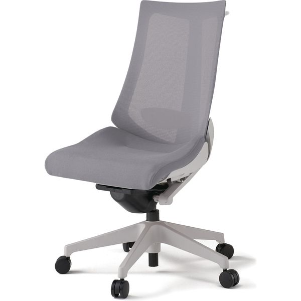 材質 背 :メッシュ張り(ポリエステル73%・再生ポリエステル27%) ポリジン加工 座 :布地張り(再生ポリエステル63%・ポリエステル37%)背ブラッケット:強化ナイロン樹脂 脚:強化ナイロン樹脂 ・ナイロン双輪キャスター付き その他商品仕様 ●アンクルムーブ・シンクロロッキング:くるぶしを支点に背と座の角度が連動して傾き、背の最後傾角度は20°まで可能です。 またロッキングの角度を5カ所で固定できるシートアングルストッパー付です。●サイドフレームレスデザイン:アンカー形状の支柱で身体を支える構造により、両サイドのアウターフレームを不要にしたスマートなシルエット。肩から背中にかけて、背のサイド部分が柔軟なため、身体を動かしたときのストレスが軽減されます。●フレキブルバックレスト:しなやかに追従する、ピボット構造バックレストは、肩の動きに合わせて回転し、上半身をスムーズに動かすことができます。●ベンディングシート:座部のインナーシェル(芯材:ポリプロピレン樹脂製)には、最適な個所が着座荷重に応じて自在にたわむように多数のスリットを設けています。●座の奥行調節機構:座面下のレバー操作により、体格に合わせたポジショニング設定が座った状態でできます。座の前縁部が折れ曲がる方式の採用で、ベンディングシートの相性もさらによくなりました。(調節75mm)●調節レバー:調節レバーはすべて座面右下に配置。 (1)シートアングルストッパー: ロッキングの角度をお好みの場所で固定できます。(2)ガス上下調節:レバー操作により座面の高さ調節が行えます。(3)ロッキング強弱簡易調節:体格や好みに合わせて、ロッキングの強弱を5段階で簡単に調節できます。 ●ランバーサポート:ランバーサポート無●肘:肘無し●ベースカラー:ベースカラー ライトグレー(GN)