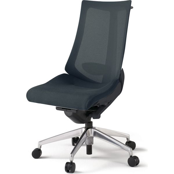 材質 背 :メッシュ張り(ポリエステル73%・再生ポリエステル27%) ポリジン加工 座 :布地張り(再生ポリエステル63%・ポリエステル37%)背ブラッケット:強化ナイロン樹脂 脚:アルミダイキャストミラー仕上・ナイロン双輪キャスター付き その他商品仕様 ●アンクルムーブ・シンクロロッキング:くるぶしを支点に背と座の角度が連動して傾き、背の最後傾角度は20°まで可能です。 またロッキングの角度を5カ所で固定できるシートアングルストッパー付です。●サイドフレームレスデザイン:アンカー形状の支柱で身体を支える構造により、両サイドのアウターフレームを不要にしたスマートなシルエット。肩から背中にかけて、背のサイド部分が柔軟なため、身体を動かしたときのストレスが軽減されます。●フレキブルバックレスト:しなやかに追従する、ピボット構造バックレストは、肩の動きに合わせて回転し、上半身をスムーズに動かすことができます。●ベンディングシート:座部のインナーシェル(芯材:ポリプロピレン樹脂製)には、最適な個所が着座荷重に応じて自在にたわむように多数のスリットを設けています。●座の奥行調節機構:座面下のレバー操作により、体格に合わせたポジショニング設定が座った状態でできます。座の前縁部が折れ曲がる方式の採用で、ベンディングシートの相性もさらによくなりました。(調節75mm)●調節レバー:調節レバーはすべて座面右下に配置。 (1)シートアングルストッパー: ロッキングの角度をお好みの場所で固定できます。(2)ガス上下調節:レバー操作により座面の高さ調節が行えます。(3)ロッキング強弱簡易調節:体格や好みに合わせて、ロッキングの強弱を5段階で簡単に調節できます。 ●ランバーサポート:ランバーサポート無●肘:肘無し●ベースカラー:ベースカラー ブラック(T) 脚:アルミミラー