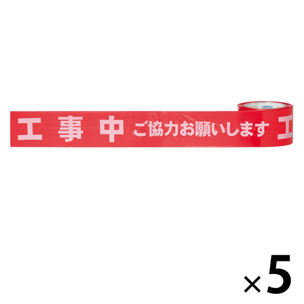 積水成型工業 標識テープ 工事中 幅70mm×長さ50m /BER50R 1セット(5巻入)