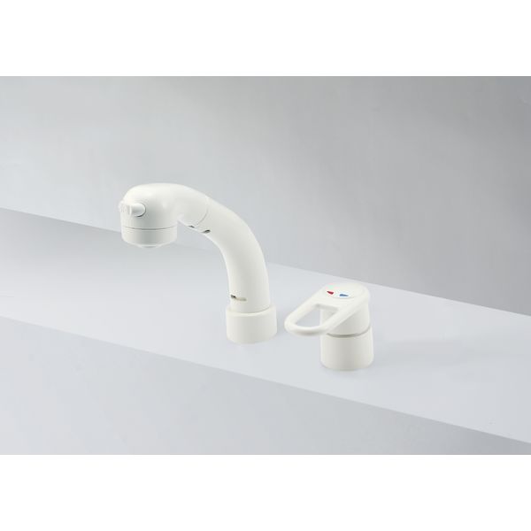 | 商品の特徴 | ●水栓の設置面が8°傾斜。 ●ブレードホース・クイックファスナー式 ●シャワー引出し式 ●8°傾斜取付タイプ ●逆止弁付 ●JIS規格 | ||