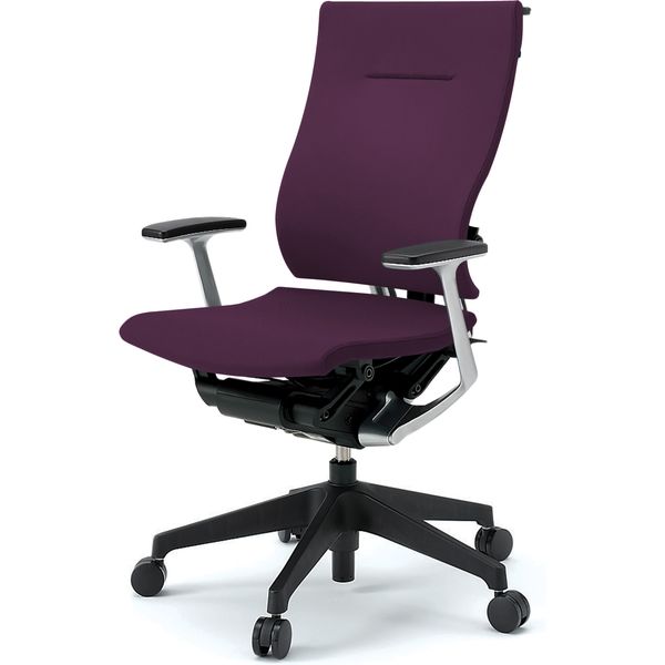 【設置込】イトーキ スピーナチェア ハイバック 背座クロス T型肘 ハンガー付 ブラックベース プラムパープル 1脚(直送品)