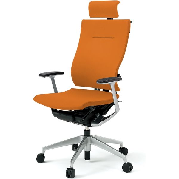 本商品:【設置込】イトーキ スピーナチェア エクストラハイバック 背座クロス T型肘 ハンガー付 シルバーベース ヘッドレスト付 アンバーオレンジ 1脚(直送品)