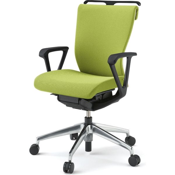 【設置込】イトーキ コセールチェア ローバック ループ肘付 ハンガー付 アルミ脚 モスグリーン×ホワイト×モスグリーン 1脚(直送品)