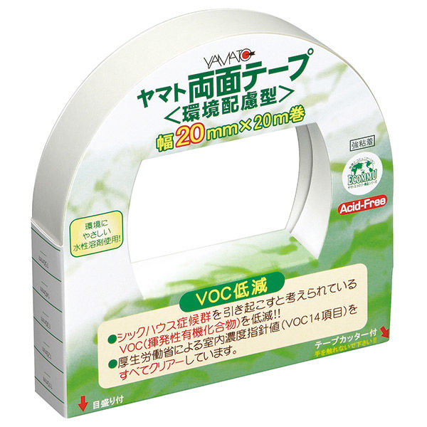 | 商品の特徴 | シックハウス症候群を引き起こすと考えられているVOC(揮発性有機化合物)を低減し、環境にやさしい水性溶剤を使用した両面テープです。 | ||