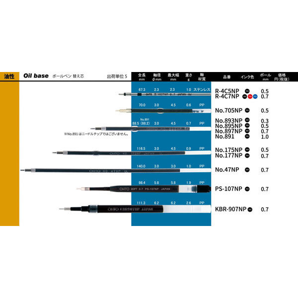 | 商品仕様 | 油性BP用替芯0.5 クロ | 本体重量 | 1g |