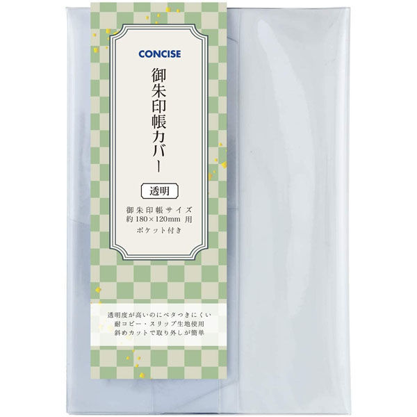 | 商品の特徴 | 御朱印帳の表紙デザインが隠れない透明のカバー。斜めカットで出し入れが簡単・スムーズ。便利なポケット付き。 | ||