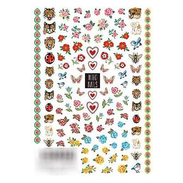 | 商品仕様3 | やわらかい素材ですので、剥がし始め等お取り扱いにご注意ください。 | 商品説明 | vintage風のローズやアニマルをデザインしました。デニム柄に組み合わせてカジュアルに、ツイード柄に組み合わせてリッチに、ブライトカラーに組み合わせて60'sに、たくさんのバリエーションで楽しんでもらえるかと思います。イングカワモトのネイルシールについて。■レジンシールとの違いは特徴1:素材が違う、シールにカットラインが入っているため使いやすい。2:ネイルシールの方が厚みが薄く柔らかいため爪のような曲面に貼りやすい。3:レジンシールは両面印刷だがネイルシールは片面印刷です。4:レジンシールに比べて柄が小さい分1枚に対してのシールの量が多いです。※注意点:市販のマニキュアだと成分が反応してシワが寄る剥がれる等の現象がおきるためジェルネイル専用となります。 |