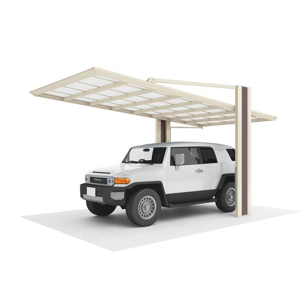 ●特徴:業界初の後方支持デザインカーポート。●特徴:フラットなフォルムで住宅と美しく調和します。