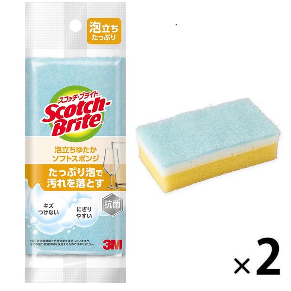 スリーエム(3M)スコッチブライト 泡立ちゆたか ソフトスポンジ 抗菌 キッチン キズつけない ブルー WS-77KB(1個入×2)