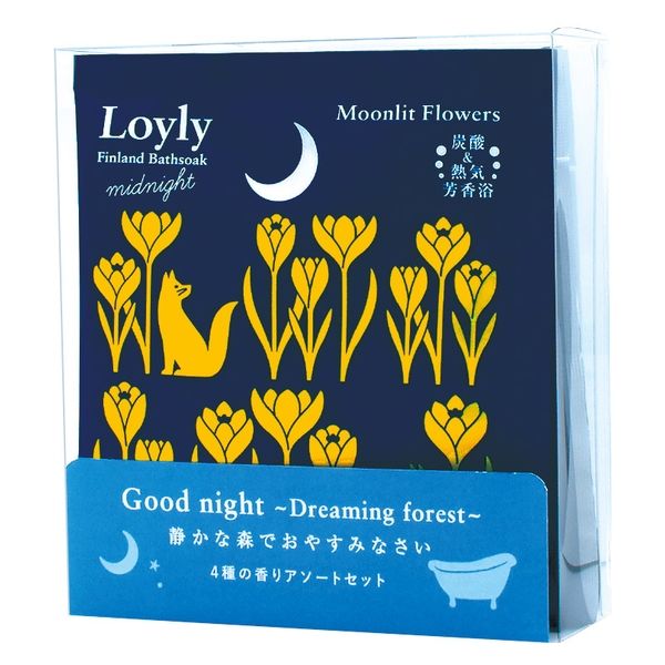 | セット内容 | ロウリュミッドナイト フィンランドバスソーク 木立、ロウリュ ミッドナイトフィンランドバスソーク 月花、ロウリュ フィンランドバスソーク 花白樺、ロウリュ フィンランドバスソーク 君影草 4種各1包 | 使用方法 | 浴槽のお湯(約200L)に本品1包を入れ、よくかき混ぜてからご入浴ください。※約40℃前後のお湯で5~10分程度のゆったり入浴をおすすめします。 |