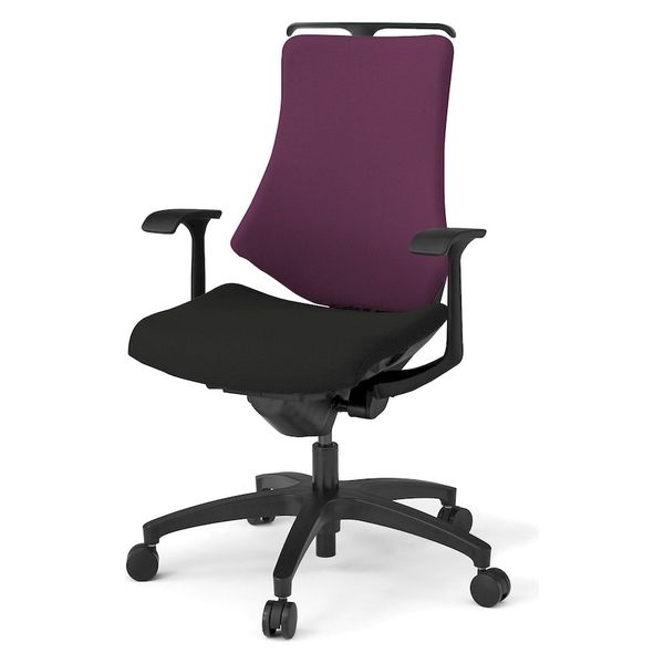 【設置込】イトーキ エフチェア ハイバック 布張り 固定肘 ハンガー付 樹脂脚 プラムパープル×黒 KG135PSHMT1T1X7 1脚(直送品)