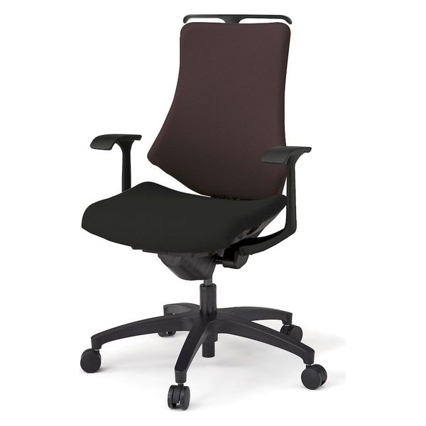 【設置込】イトーキ エフチェア ハイバック 布張り 固定肘 ハンガー付 樹脂脚 チョコレートブラウン×黒 KG-135PSHT1T1H2 1脚(直送品)