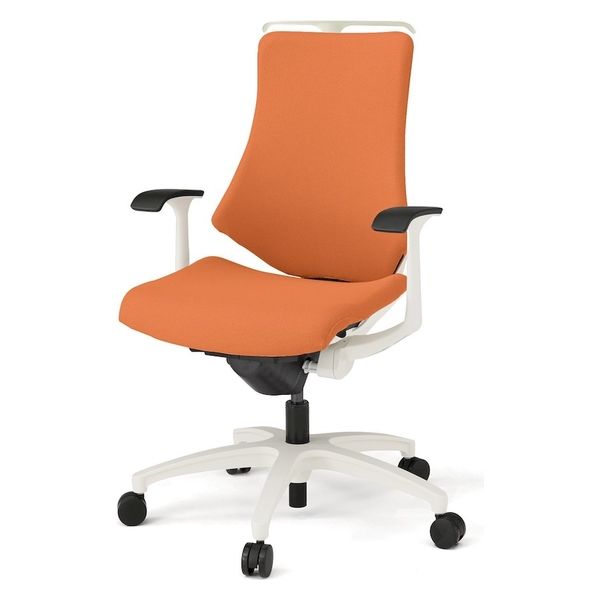 【設置込】イトーキ エフチェア ハイバック 布張り 固定肘 ハンガー付 樹脂脚 アンバーオレンジ×白 KG-135PSH-W9D3 1脚(直送品)