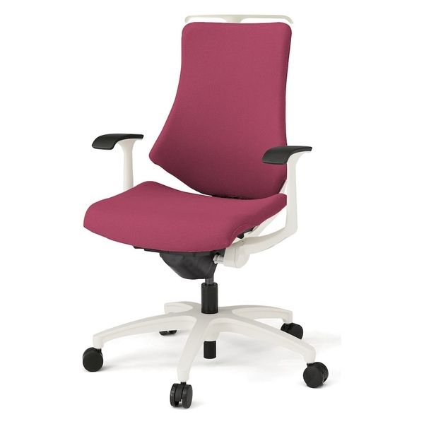C683BW FSF9|オカムラ シルフィー ローバック 布張 白ボディ アルミ脚 可動肘 レッド 1脚(直送品)