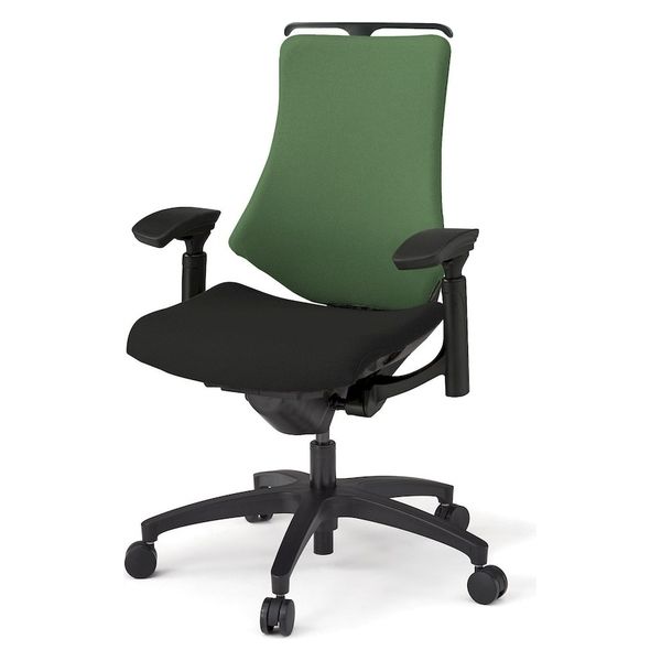 【設置込】イトーキ エフチェア ハイバック 布張り 可動肘 ハンガー付 樹脂脚 アイビーグリーン×ブラック KG-137PSHT1T1Q2 1脚(直送品)