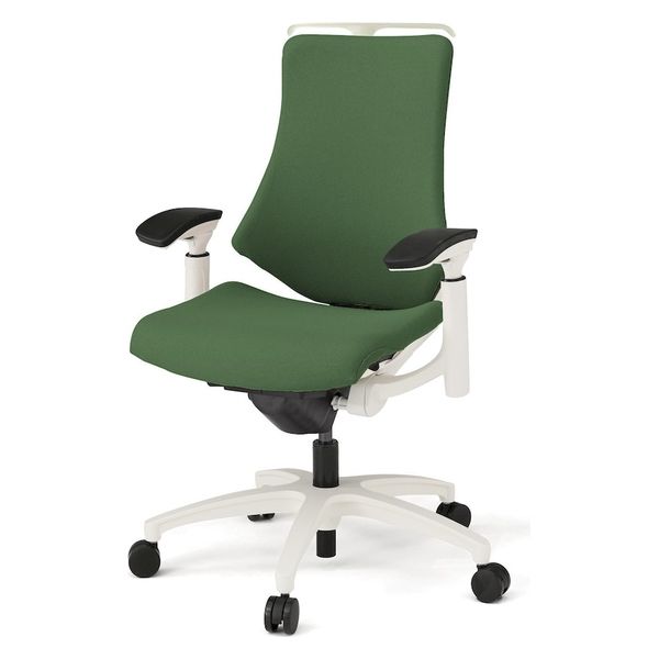 【設置込】イトーキ エフチェア ハイバック 布張り 可動肘 ハンガー付 樹脂脚 アイビーグリーン×ホワイト KG-137PSH-W9Q2 1脚(直送品)