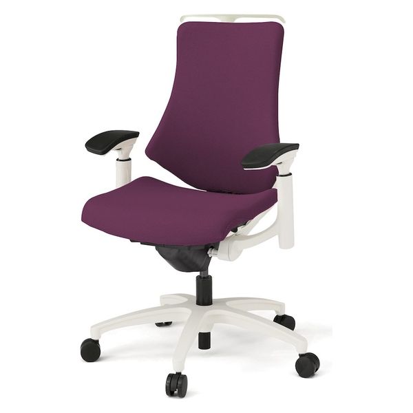 【設置込】イトーキ エフチェア ハイバック 布張り 可動肘 ハンガー付 樹脂脚 プラムパープル×ホワイト KG-137PSH-W9X7 1脚(直送品)