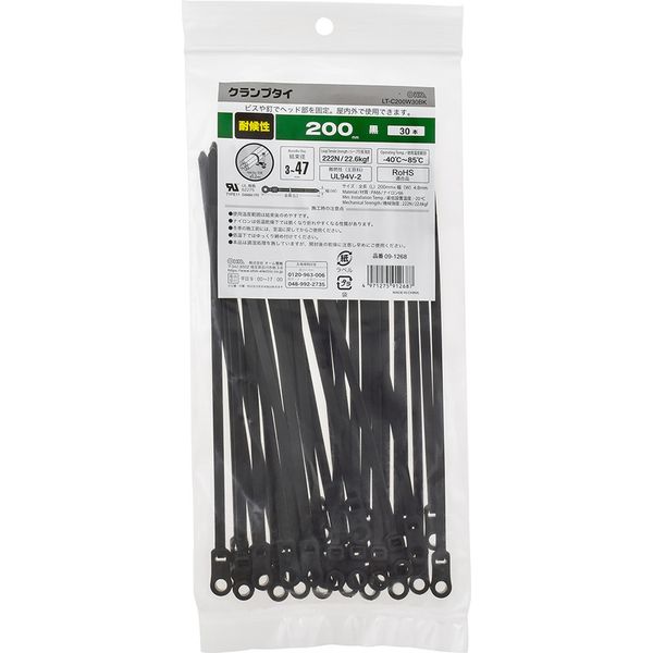 | 備考 | 【返品について】お客様のご都合による返品はお受けできません。※ 使用温度範囲は結束後のめやすです※ ナイロンは低温乾燥下では脆くなり折れやすくなる性質があります※ 冬季の施工前には、室温に戻してからご使用ください※ 低温下ではゆっくり締め付けてください※ 本品は調湿処理を施していますが、開封後の乾燥に注意し早めにご使用ください | ||