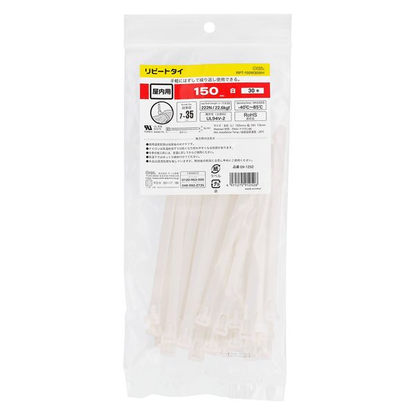 オーム電機 リピートタイ150白 150W30WH 09-1252 1セット(150本:30本×5個)