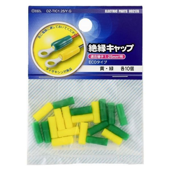 オーム電機 絶縁キャップ 1.25黄/緑 09-2178 1セット(400個:20個×20パック)