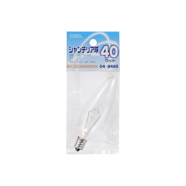 オーム電機 シャンデリア球E12 40Wクリア LB-C2240-C 1セット(10個)