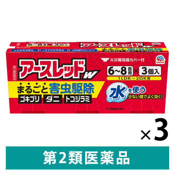 アースレッドW 6~8畳用 3個パック×3セット アース製薬 ゴキブリ イエダニ ノミ トコジラミ ハエ 蚊【第2類医薬品】
