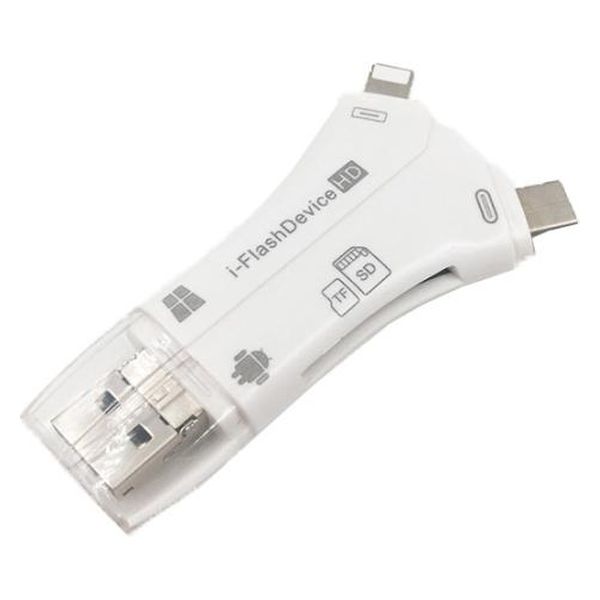 | 商品の特徴 | Lightning、USB2.0、Type-c、Micro 4-in-1 多機能カードリーダーは、SD/TFカードホルダーを介してデータを転送することができます。この製品を購入することで、デバイスごとに対応した製品を複数購入する必要がなくなります。SDカードリーダーにより、容量不足やストレージの問題も解決できます。さらに、PC、タブレット、スマートフォン間でのデータ転送やバックアップが簡単に行えます。データ転送にはWi-Fiや通信の必要はありません。 | ||