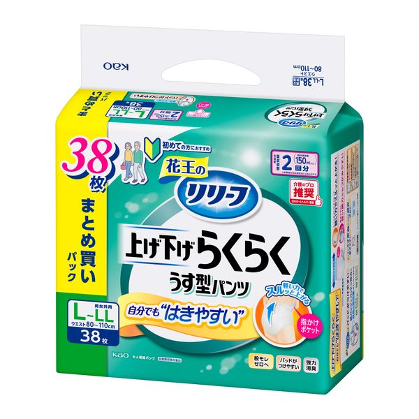 花王 リリーフ パンツタイプ 上げ下げらくらくうす型パンツ 2回分 L 1パック(38枚入)