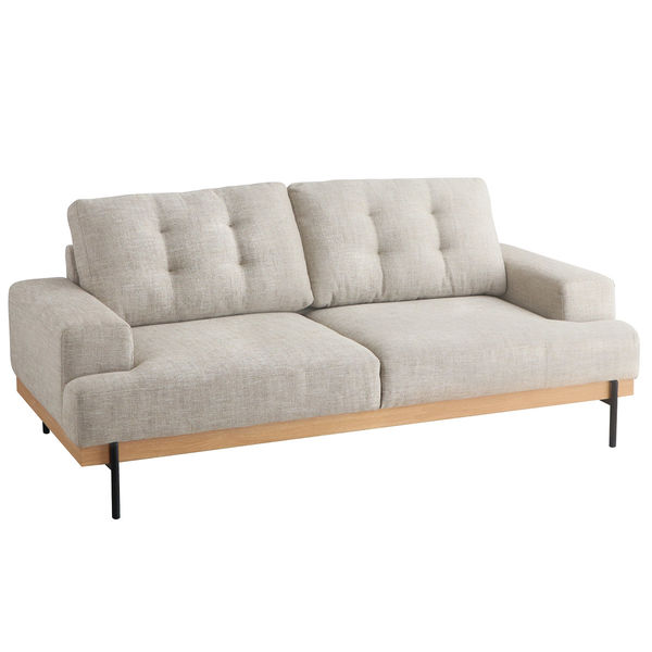 | 商品の特徴 | シンプルな見た目と上質な生地質感がありながら、木目とスチール脚のアクセントでバランスよく仕上がったカジュアルソファです。コンパクトな暮らしに少しゆとりを持てるソファはいかがでしょう。 | ||