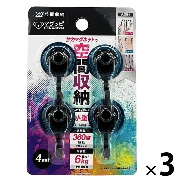 ジット マグッピ 強力マグネットフック ブラック MGF-K4 1セット(1パック(4個入)×3)