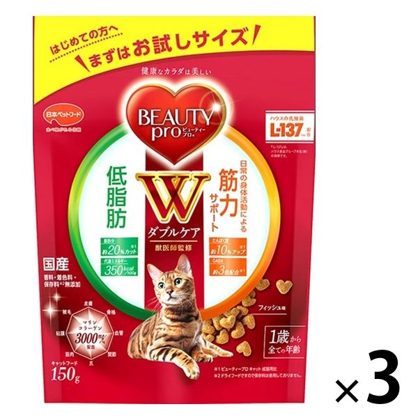 【ロハコサンプル】ビューティープロ キャット Wケア 低脂肪・筋力サポート 1歳から フィッシュ味 国産 150g 3袋 お試し
