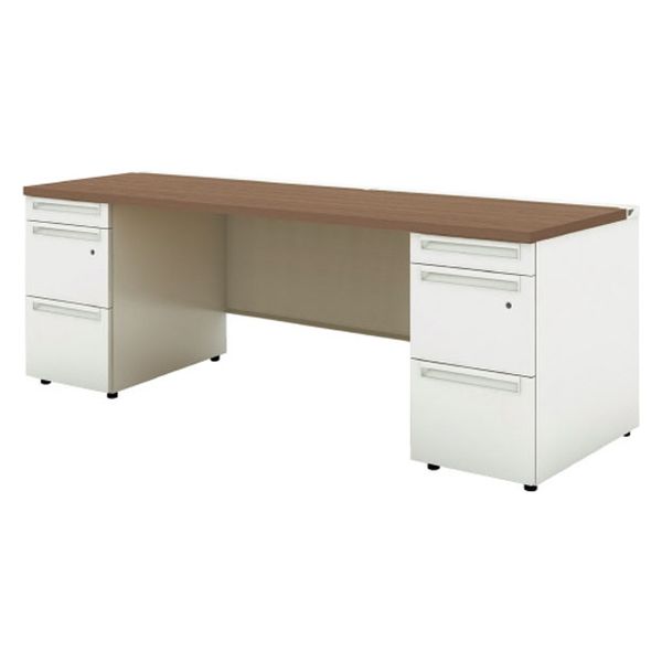 質量 84.02kg その他商品仕様 ●天板色:ピュアウォルナット●本体色:ホワイト●タイプ:両袖机(A-3段袖×A-3段袖)