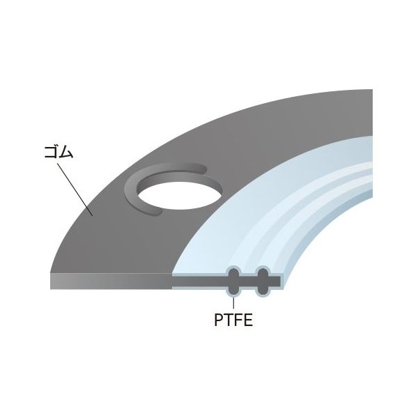 商品の特徴 ●ゴムを中芯として、PTFEフィルムを加圧加熱成形し、一体密着させたガスケットです。●ゴムの弾性とPTFEの耐食性を兼ね備え、シール性に優れたガスケットです。●PVC製配管やガラスライニング配管のような、締付力があまりかけられない箇所の用途に適している。