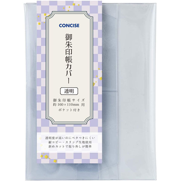 | 商品の特徴 | 御朱印帳の表紙デザインが隠れない透明のカバー。斜めカットで出し入れが簡単・スムーズ。便利なポケット付き。 | ||